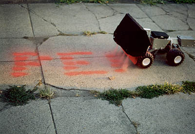 Met een soort "dot-matrix" graffiti robot kan het! Laat Co het ding niet in handen krijgen...Ik zie al een straat vol staan met "KORST KORST KORST"
