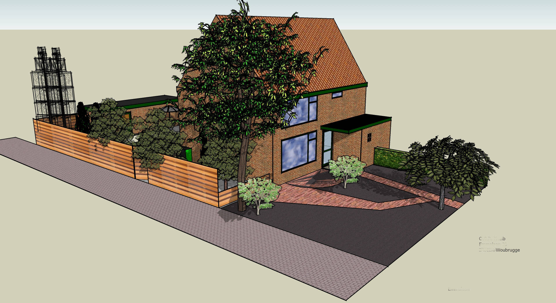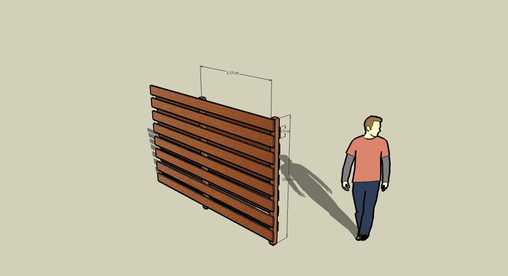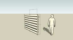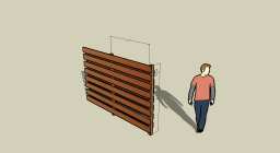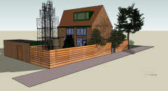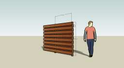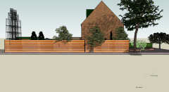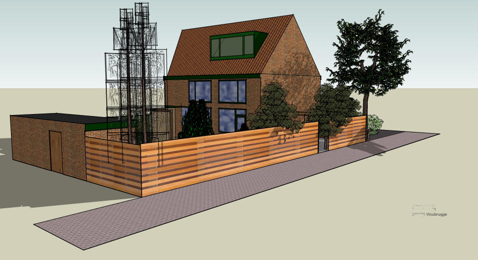 Dan nu maar de aanvraag voor de hele schutting. En.. Mijn tekenprogramma kende als materiaal alleen maar een schutting met boogjes, verticale plankjes of metalen hekken.Dus had ik bijna een vergunning gehad voor een schutting met verticale plankjes, tegen elkaar aan.*zucht* Dus hierbij, een detail tekening van de schutting. Dit was nu wat makkelijker; hij staat er namelijk al :)