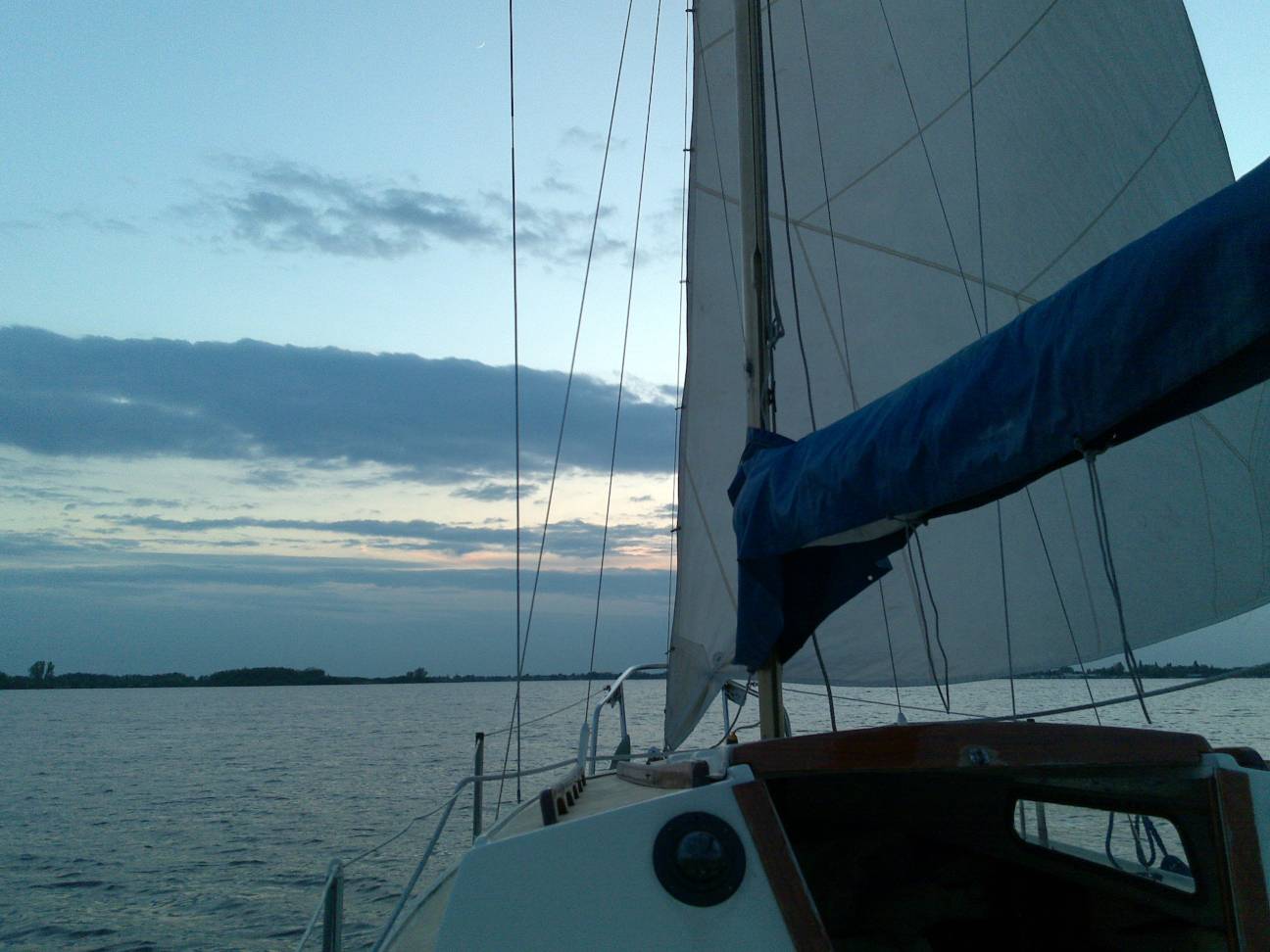 Met grote dank aan mijn schoonmoeder! Ik heb zelf een scheur geplakt met speciaal zeilreparatie doek die ik gekregen heb van deze super zeilmaker! (beetje reclame terug geven ;)). En mijn schoonmoeder heeft was loszittende naden door de naaimachine gehaald. 7 knopen moet weer een makkie zijn.