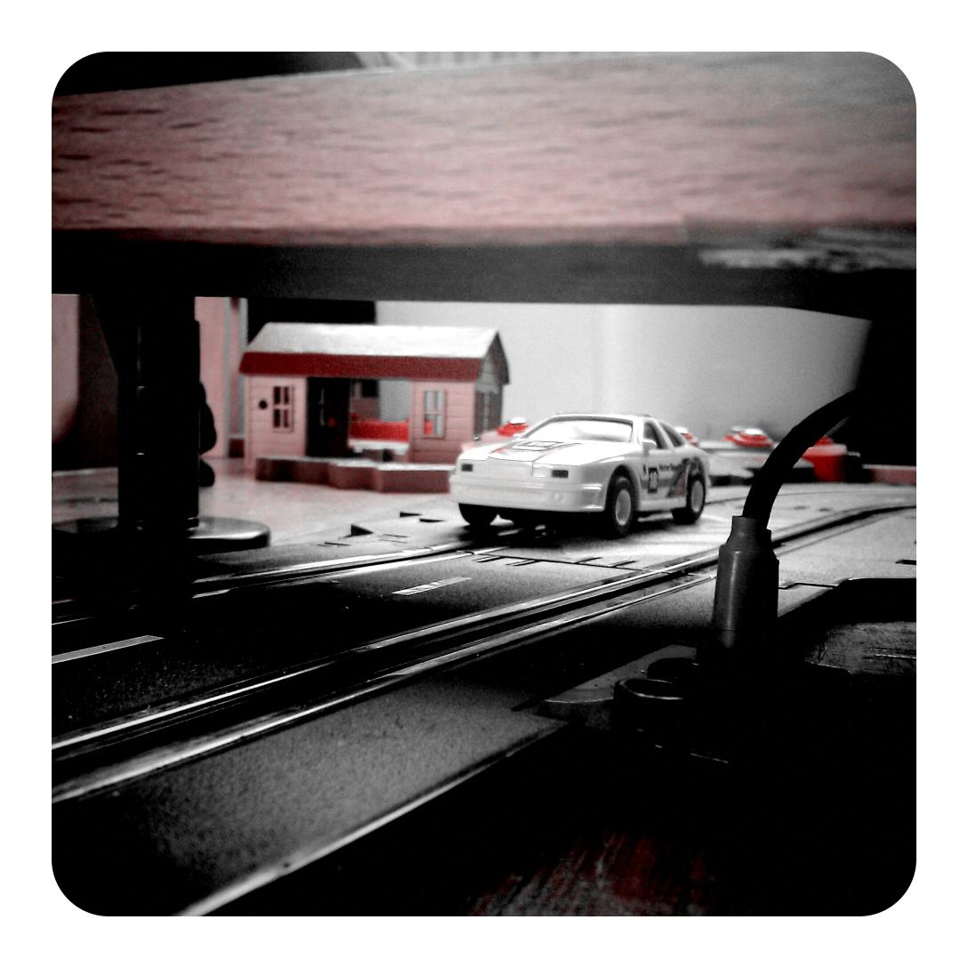 Wegens gebrek aan mooi weer aan het spelen met racebaan en trein