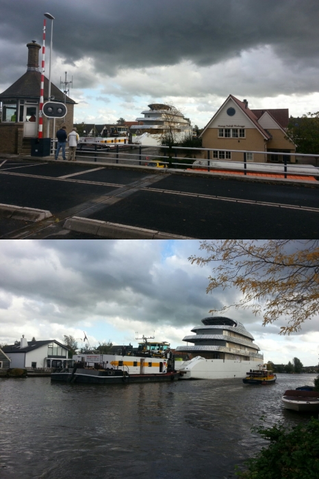 Casco boot kan door harde wind niet door de brug. Indrukwekkend ding!
